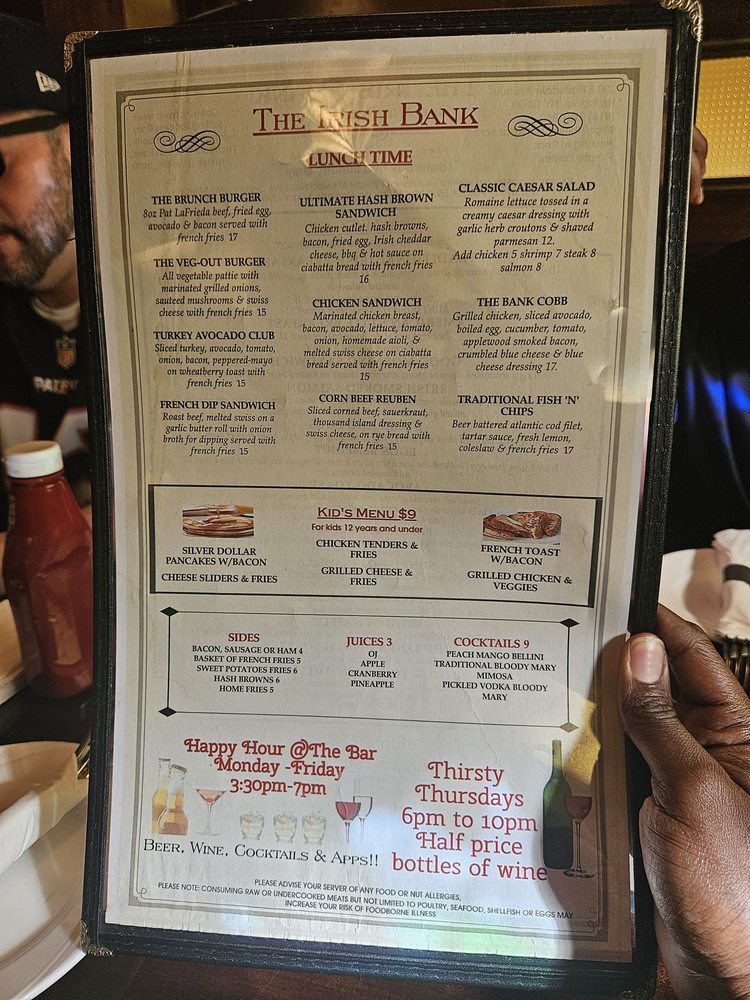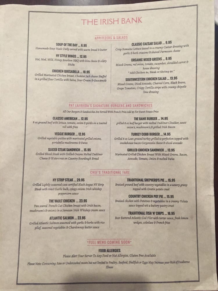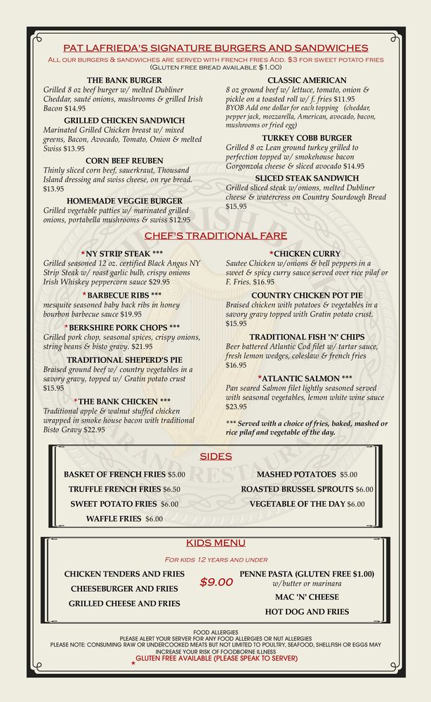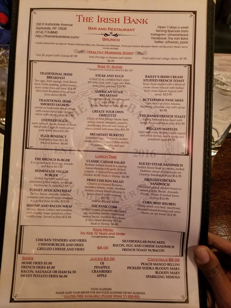 The Irish Bank Menu