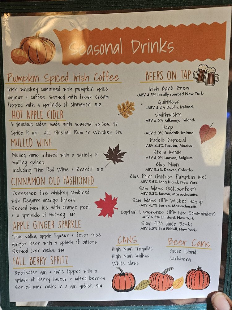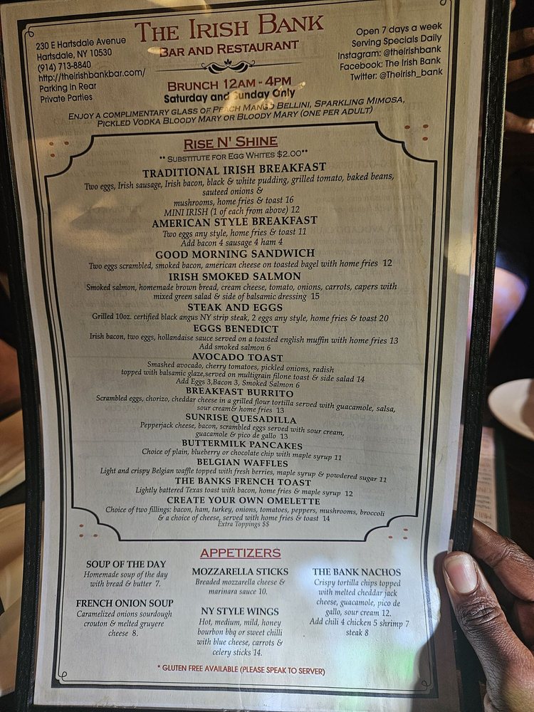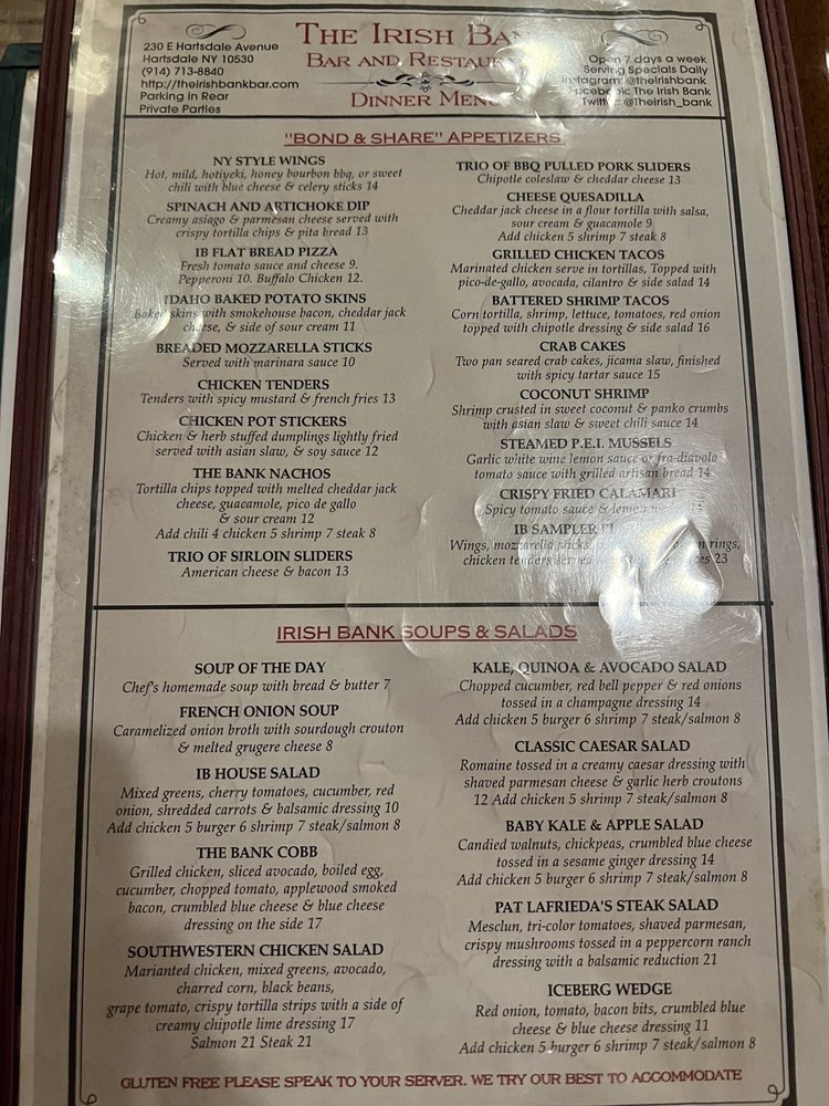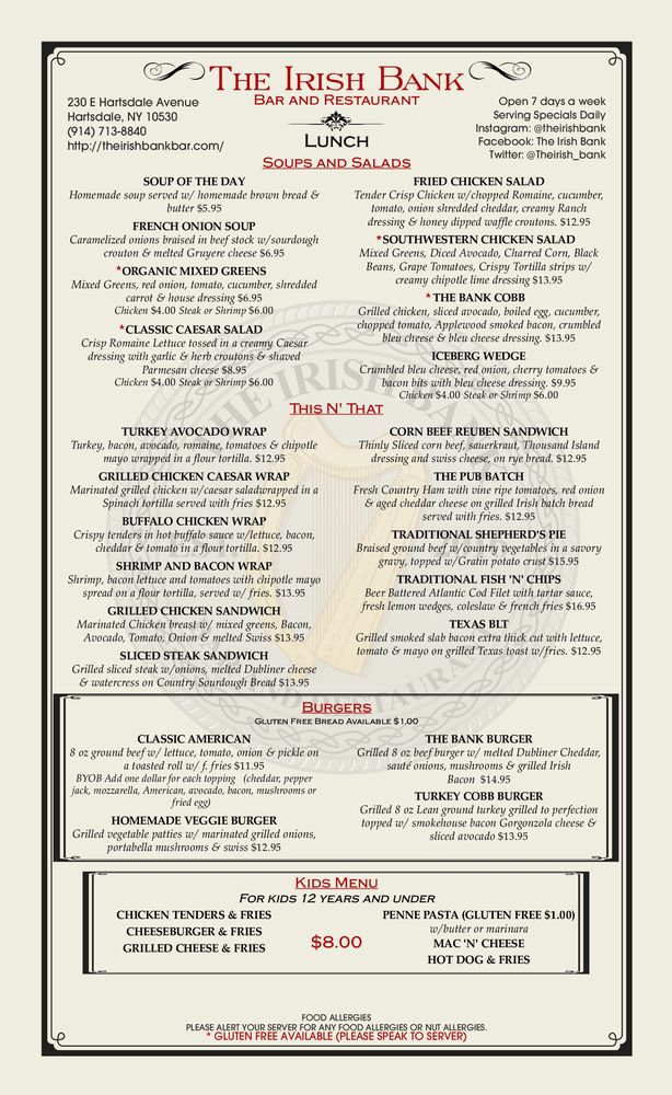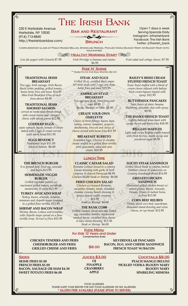 The Irish Bank Menu